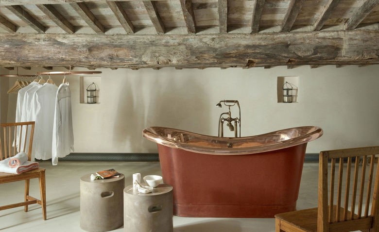 Реже в интерьерах домов в стиле лофт используются теплые коричневые оттенки — от терракотовых до кофейных. Это всевозможные деревянные поверхности, кожаная обивка дивана, красноватый кирпич на стенах. Если хочется более ярких цветов, можно сделать акцентирование насыщенным синим цветом или ярким желтым.